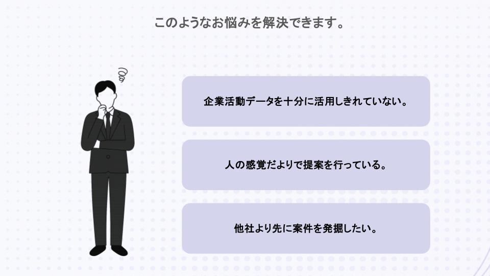 • 企業情報が断片的・非構造的で、最適な候補企業を見つけられない